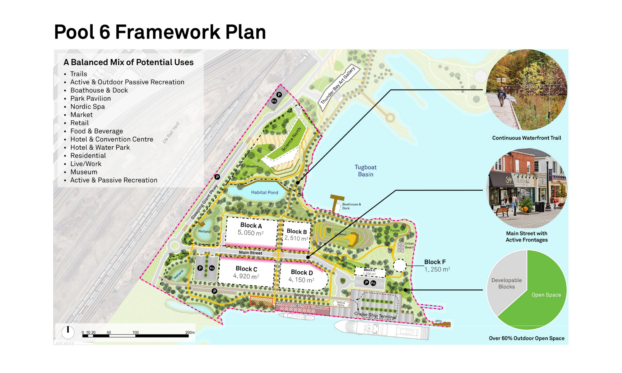 The development scenarios for Pool 6 are informed by previous public engagement and a study by the Thunder Bay Community Economic Development Commission (CEDC).